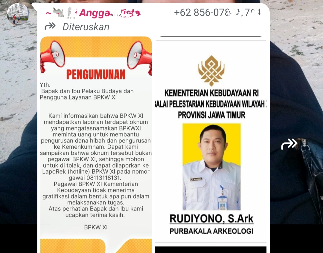 Berikut maklumat resmi dari pihak BPK Wilayah XI. Diharapkan pihak-pihak yang menjumpai oknum tersebut segera melapor pada nomor gawai yang tertera: